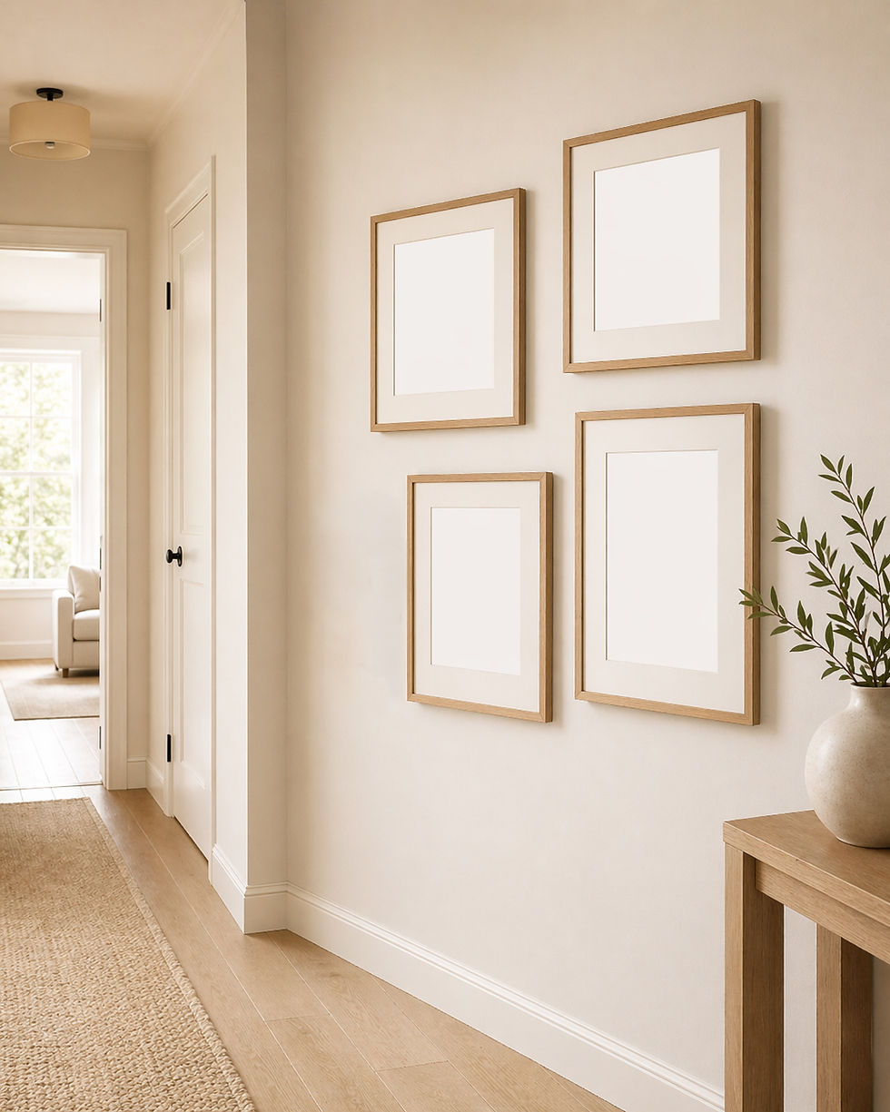 Hallway art works best when it feels connected in mood, colour, or story.
